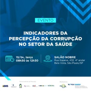 Por isso, a CBDL está no apoio de mais um evento organizado pelo FGVethics, em parceria com o Instituto de Ética Saúde (IES), que tem como mote promover o lançamento do questionário da pesquisa Indicadores da Percepção da Corrupção no Setor da Saúde.