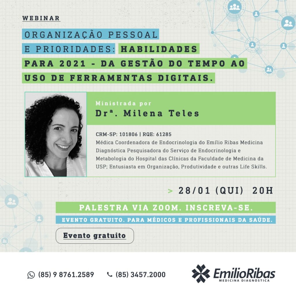 A pandemia de covid-19 trouxe mudanças drásticas e muitos planejamentos precisaram ser refeitos, e uma das profissões mais afetadas foi a de quem trabalha na linha de frente do combate à doença, como médicos e os demais profissionais da área da saúde. Fazer planos e organizar os projetos de 2021 são desafios que serão abordados em um webinar organizado pelo Emilio Ribas Medicina Diagnóstica e voltado para o público da saúde, que tem como tema “Habilidades para 2021: da gestão do tempo ao uso de ferramentas digitais”.